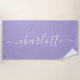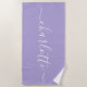 Toalla de playa personalizada con nombre de guión de moda lindo en lavanda púrpura
