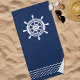 Esta elegante toalla de playa presenta un diseño clásico de la rueda del barco sobre un fondo azul marino. Fabricado a partir de microfibra suave y absorbente para el máximo confort y secado rápido. Ideal para la playa, la piscina o el lago.