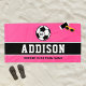 Toalla De Playa Nombre del jugador de fútbol rosa personalizado