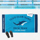 El diseño de toallas de baño personalizadas para los nadadores incluye texto personalizado para el nombre y apellido del nadador, nombre del club de natación y mascota u otro texto. Agregue el logotipo del equipo a la imagen del marcador de posición del delfín. El esquema de color azul marino, azul marino y blanco se puede modificar para coordinar con los colores del equipo. Póngase en contacto con nosotros en kathleen@plushpaper.com con preguntas de diseño.