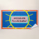 Fun ini the Sunshine está escrito en escritura negra dentro del rectángulo rosa de la puesta de sol pálido y azul turquesa. Patrón geométrico de la playa de verano. Gran sol amarillo brillante sobre el agua azul del océano en el centro con borde blanco, naranja y rosado. Diseño original de TamiraZDesigns.