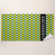 Las características del este de playa diseño de la toalla un modelo que implique formas amarillas y verdes del diamante, y el negro alinea. También ofrece un nombre personalizado en texto coloreado blanco dentro de un área coloreada oscuridad en el frente. [~Z0000000]