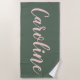 Toalla de Playa con Nombre Personalizado Caligrafía Minimalista Rosa Beige y Verde Bosque