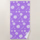 Nombre tipográfico corto personalizado y estilo margarita blanco flores toalla de playa blanca. El color de fondo se puede cambiar si es necesario, actualmente es morado. Divertido diseño gráfico personalizado, para personalizar con su propio nombre corto, actualmente lee Jessica. Diseñado por Sarah Trett para www.mylittleeden.com sólo en Zazzle.