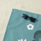 Toalla De Playa Nombre personalizado Flores de estilo retro azul