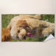 Esta linda toalla de playa de perro de doodle dorado muestra una foto de un cachorro en el parque. Añade tu propio nombre personalizado para que este diseño sea tu propio. Fotografía creada por la galardonada fotógrafa Maria Jeffs.