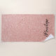 Toalla de playa rosa con brillo de rosa dorado femenino. Monograma y nombre. Toalla de playa rosa bonita de verano. Perfecta para ella, regalo de despedida de soltera.