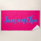 Esta toalla de playa personalizada tiene un diseño sorprendente, con un fondo de neón rosado y una fuente azul brillante para insertar el nombre. Tan brillante que destaca, este diseño llamativo seguro que va a dar la vuelta a la cabeza. ¡Personalice su toalla de playa hoy mismo!