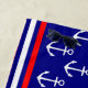Personalice esta toalla de playa de ancla azul marino y blanca con su propia redacción. Un regalo perfecto para los recién casados, la fiesta de bodas o la creación de toallas personalizadas para las vacaciones en la playa.