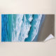 Hermosas olas de océano azul y calmado se estrellan en la playa de arena.