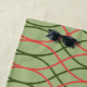 Esta toalla de playa tiene un diseño boho de olas verdes y naranjas sobre un campo de verde claro.