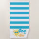 Celebrate a sunny first birthday in the cutest way with this One in the Sun beach towel! Featuring tropical turquoise and white stripes, this towel shines with retro charm — complete with cheerful vintage-style lettering and an adorable sunshine character wearing shades ☀️🕶️. Designed as part of a 1st birthday party collection, it’s perfect for beach or poolside celebrations and makes a sweet, standout prop for those milestone photos. Whether it’s spread out for a picnic, used after a splash in the water, or featured in a fun photo shoot, this towel adds that extra special touch to your “One in the Sun” party theme. A keepsake-worthy piece that brings joy, color, and sunshine to your little one’s big day 🌊🎉.