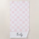 Toalla De Playa Painted Pink Checkerboard Pattern Personalized