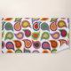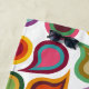 Esta toalla de playa tiene un diseño moderno de mediados de siglo de paisleys recubiertos de colores retro.
