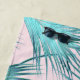 Una gran idea para su casa de playa o casa de vacaciones, este diseño de toallas de playa personalizado tiene un diseño fresco y de moda, con un toque tropical de palmeras en un agua helada/azul turquesa sobre un fondo rosa rubor que añade el encanto de las islas. La parte inferior de la toalla tiene una banda de color coincidente con una plantilla de texto para personalizar con el nombre de su familia u otro texto deseado.
