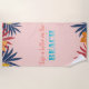 Toalla de playa tropical con hojas de palmera acuarelas y flores tropicales.