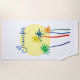 Sencilla, moderna, única, colorida toalla de playa tropical con palmeras y nombre en monograma.