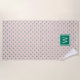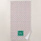 La toalla de playa monogramada de moda precoz en rosa y verde pálido lustre un patrón de palmeras, con su monograma inicial centrado en el fondo en verde esmeralda vibrante.