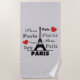 Ilustracion de diseño de textos en París con la Torre Eiffel y decoración de corazones rojos. Es posible cambiar el color de fondo y añadir uno diferente al diseño con su elección.