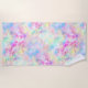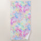 Esta toalla de playa cuenta con un magnífico giro de color arcoiris pastel a la tintada con sutiles imágenes holográficas, iridiscentes y acuarelas.