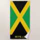 Patriotic Jamaican flag beach towel. There's customisable text across the bottom where you can add your name or message