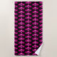 Una toalla de playa muy linda para los Góticos de colores. Esto muestra un patrón de cráneos alados románticos en rosa caliente sobre un fondo negro.