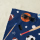 Este divertido patrón de equipo deportivo para niños tiene pelotas de fútbol, pelotas de fútbol, pelotas de béisbol, voleibol, palos y pollitos de hockey y bates de béisbol. El equipo atlético tiene un fondo azul oscuro. Es una gran adición a una piscina o a una excursión en la playa de un niño o chica. También hace un lindo cumpleaños, Navidades u otro regalo de vacaciones.