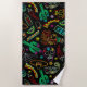 Patrón de Fiesta de Arte de la Línea México alegre y colorido, compuesto por elementos típicos como calaveras de azúcar, maracas, guerrero inca, guerrero azteca, pimienta chile, cactus, pirámide, cal, tequila, sombrero, tacos, un camaleón, elementos florales étnicos y decorativos. Original Vector Art Copyright BluedarkArt.