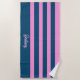 Toalla De Playa Patrón de franjas azul y rosa personalizado