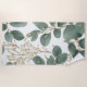 Este diseño presenta hojas de eucalipto y ramas en un fondo blanco. El diseño tiene un estilo plano, gráfico y un suave color verde y dorado. El patrón se compone de hojas y ramas dispuestas en una dirección diferente.