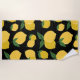 Toalla De Playa Patrón de limón Fruto retro Amarillo sobre negro