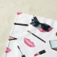 El patrón ilustrado de Destei de diferentes tipos de productos de maquillaje junto con labios rosados. Estos productos de maquillaje incluyen lápiz labial, rímel, polvo con espejo y pinceles de maquillaje. También hay un área de texto personalizable para un nombre de color rosa.