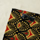 Patrón oro y rojo Art Deco sobre fondo negro.