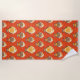Un bonito patrón de pescado tropical personalizado con una atractiva toalla de playa de fondo rojo.