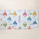 Esta toalla de playa personalizada incluye peces tropicales sonrientes en tonos rojos, azules, verdes, amarillos y naranjas, nadando entre algas, corales y burbujas, con un suave fondo azul claro.