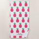 Toalla de Playa Blanca Rosa con Patrón de Piña Divertido. Más productos con este diseño están en la colección a continuación