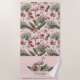 Esta colorida toalla de playa o de piscina con flamencos rosas tropicales, flores de hibisco y jazmín dibujadas a mano, piñas, hojas de plátano y bebidas tropicales, todo ello con un elegante fondo rosa. Personalizar con título y nombre.