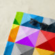 Personaliza un regalo único de diversión con tu nombre y inicial. Muchos triángulos en colores amarillo, naranja, rojo, rosa, azul, verde creando un divertido patrón geométrico moderno.