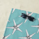 Toalla de playa costera moderna de moda en verano con un diseño de estrella de mar blanco dibujado a mano sobre un fondo azul marino. +++++++++ Perfecto para sus días de verano en la playa o piscina.