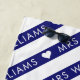 Guión azul y blanco san serif tipografía diagonal rayada toalla de playa de la señora boda para una esposa recién casada.