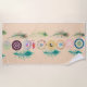 This beach towel design features intricate mandalas with meditation symbols at their centers, radiating calm and balance. The mandalas are beautifully adorned with peacock feathers on either side, adding a touch of vibrant elegance to the design.