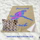 Dibujo gráfico, vivo, de un loro tropical, encaramado en una flamante pantalla, en un estilo exótico, insular, en fuschia, rojo, turquesa, azul, amarillo, blanco y negro.