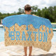 Obtén ese goteo con esta impresionante toalla de playa personalizada con un diseño de helado derretido azul sobre un fondo de cono de gofre. Personaliza con su nombre en letras azules y deportivas. Esta toalla de helado de beisbol es perfecta para la temporada posterior.