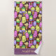 A los niños les encantará esta colorida toalla de playa. Está adornado con lindos personajes kawaii, palomas y helados. También tiene texto personalizable en la parte inferior donde puede agregar su propio nombre o mensaje