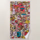 Personalizado Caracter Mano Dibuja Toss Pattern Niños Toalla De Playa. Patrón colorido con diferentes personajes divertidos y dibujados a mano. Genial para niños y adolescentes.