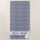 Toalla de playa de nombre de barco Personalizado azul y blanco con un patrón de círculos geométricos. El clásico patrón de Shippo japonés se refiere a los siete tesoros del budismo y encarna el poder, la concentración y la interacción de diferentes elementos. Las toallas de playa personalizadas son hermosas ideas de regalo para ella y para él, marineros y barqueros. #ybeedesign #ybeesea #navyblueachtowel #personalización de la toalla de playa Personalizado nombre barco toallas de playa hechas con amor al océano © Design y.BEE SEA