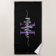 Toalla de playa moderna, moderna y de diseño con tu nombre personalizado e inicial en un diseño de caligrafía de guion de moda con flores de remolino (asegúrate de mantener los emoticonos o espacios al lado del nombre completo para que los remolinos permanezcan). Esta es la versión morada y negra. Tamaño fácil de personalizar y añadir más texto o imágenes personales o fotos bajo "Editar usando herramienta de diseño" en la pestaña de personalización.