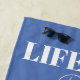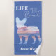 Sus vacaciones no están completas sin este moderno diseño de playa frenchie en azul y rosa que dice: "La vida es mejor en la playa". Personalizar agregando su nombre en la sección Personalizar de esta página. Consulte nuestros otros juegos de toallas, ropa y accesorios para maletas para una estancia única.