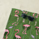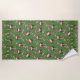 Este modelo bonito, original del flamenco tiene una torsión retra del art déco con un adorno geométrico. Hecho en sombras brillantes del rosa, el verde y el gris en un campo de verde oscuro, este modelo elegante, tropical también incluye las frondas del helecho. Personalice esta toalla de playa con su nombre. Cuando usted utiliza la plantilla del texto, su nombre aparecerá en ambos extremos de la toalla (upside-down en el top, para la visión fácil mientras que usted está tomando el sol). ¡Dirija a la playa en estilo con esta toalla hermosa del flamenco!