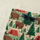 This camping-themed beach towel design is complete with a seamless pattern of cute brown bears, red tents, and a forest in a watercolor style as well as a place to add your name.